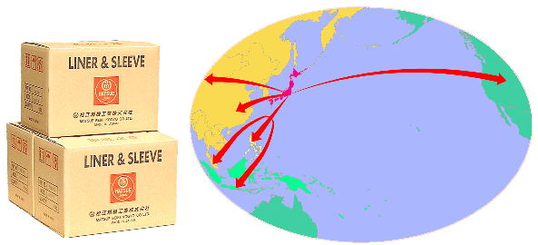 埼玉県央の工場で生産されたシリンダライナー・スリーブは東南アジア(フィリピン・マレーシア・シンガポール・インドネシア)や中国、中南米や中近東へも輸出され、その精度並びに品質の良さから、多くのお客様より好評を得ております。